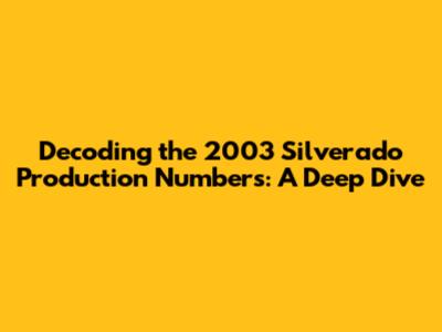 2003 Silverado: Decoding Production Numbers & Specs