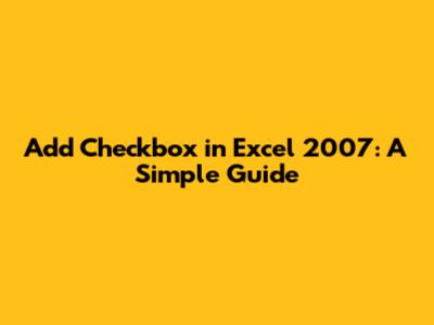 Add Checkbox In Excel 2007: A Simple Guide