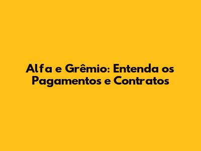 Alfa E Grêmio: Entenda Os Pagamentos E Contratos