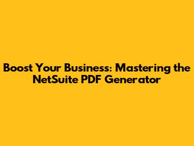 Boost Your Business: Mastering The NetSuite PDF Generator
