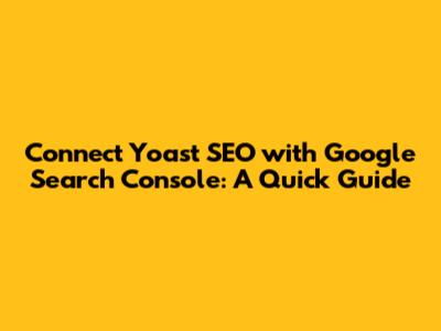 Step-by-Step Guide to Connecting Yoast SEO with Google Search Console