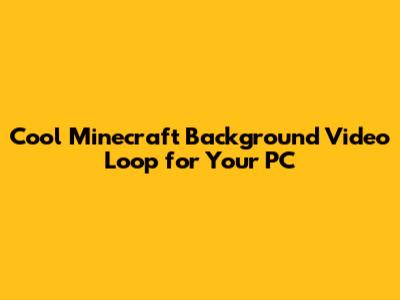 Cool Minecraft Background Video Loop For Your PC