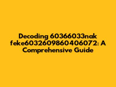 Decoding 60366033nak Feke6032609860406072: A Comprehensive Guide