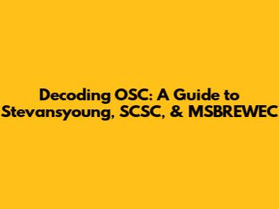 Decoding OSC: A Guide To Stevansyoung, SCSC, & MSBREWEC