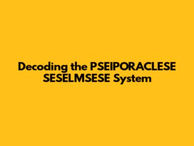Unveiling the PSEIPORACLESE SESELMSESE System