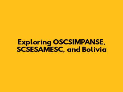 Exploring OSCSIMPANSE, SCSESAMESC, And Bolivia