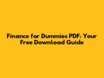 Finance For Dummies PDF: Free Download Guide
