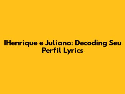 IHenrique E Juliano: Decoding Seu Perfil Lyrics