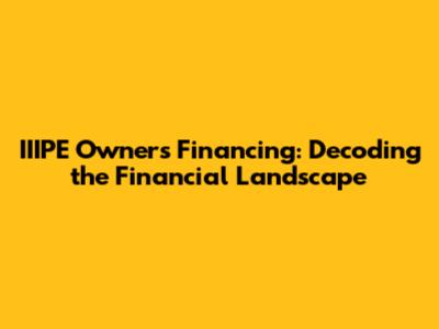 IIIPE Owners Financing: Decoding The Financial Landscape