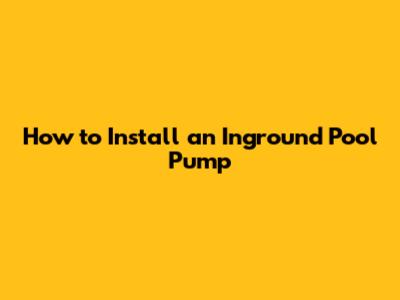 Inground Pool Pump Installation Guide