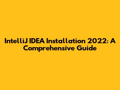 Install IntelliJ IDEA 2022: A Comprehensive Guide