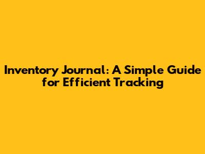 Inventory Journal: A Simple Guide For Efficient Tracking