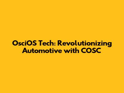 OsciOS Tech: Revolutionizing Automotive With COSC