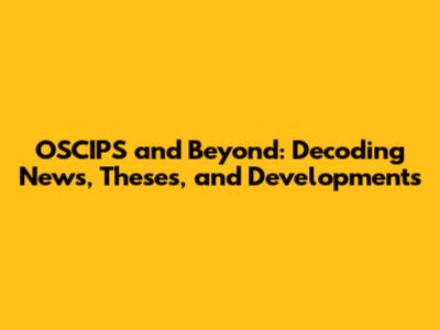 OSCIPS And Beyond: Decoding News, Theses, And Developments