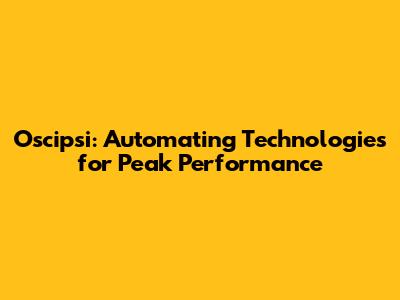 Oscipsi: Automating Technologies For Peak Performance