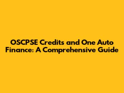 OSCPSE Credits: Your Path To Auto Finance