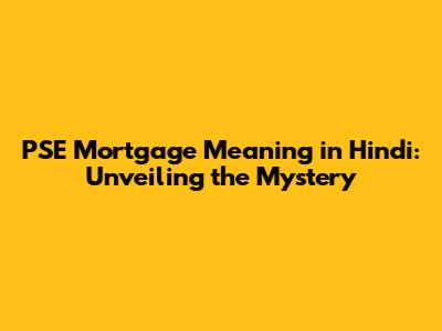 PSE Mortgage Meaning: A Hindi Guide