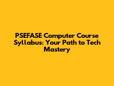 PSEFASE Computer Course Syllabus: Your Path To Tech Mastery