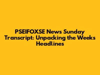 PSEIFOXSE News Sunday Transcript: Unpacking The Week's Headlines
