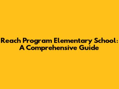 Reach Program Elementary School: A Comprehensive Guide
