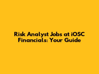 Risk Analyst Jobs At IOSC Financials: Your Guide