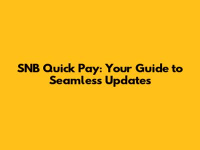 SNB Quick Pay: Your Guide To Seamless Updates