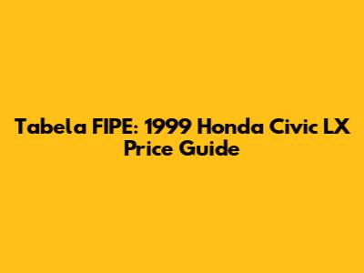 Hey guys! Today, we're diving deep into the Tabela FIPE to explore the price range of the 1999 Honda Civic LX. If you're thinking about buying, selling, or just curious about the value of this classic car, you've come to the right place. The Honda Civic LX 1999 holds a special place in automotive history, blending reliability, efficiency, and affordability in a neat package. Let's get started and unravel everything you need to know about its market value according to the Tabela FIPE.