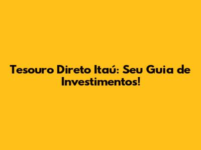 Tesouro Direto Itaú: Seu Guia De Investimentos!