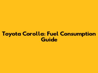 Toyota Corolla: Fuel Consumption Guide