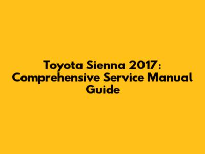Toyota Sienna 2017: Comprehensive Service Manual Guide