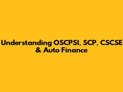 Understanding OSCPSI, SCP, CSCSE & Auto Finance