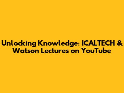 Hey everyone! Ever felt like you're swimming in a sea of information, desperately trying to find those precious nuggets of wisdom? Well, get ready to grab your snorkel, because we're diving deep into the treasure trove that is ICALTECH Watson Lectures on YouTube! This is your ultimate guide, the inside scoop, the secret handshake to unlocking a world of fascinating insights. We'll explore why these lectures are so awesome, what you can expect, and how to get the most out of this incredible resource. So, buckle up, grab your favorite beverage, and let's get started!