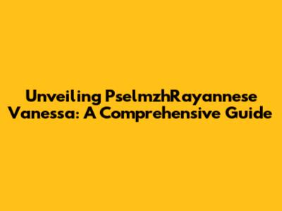 Unveiling PselmzhRayannese Vanessa: A Comprehensive Guide