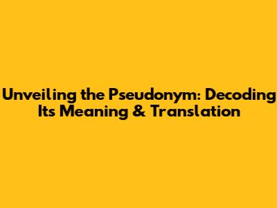 Unveiling The Pseudonym: Decoding Its Meaning & Translation