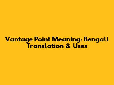 Vantage Point Meaning: Bengali Translation & Uses